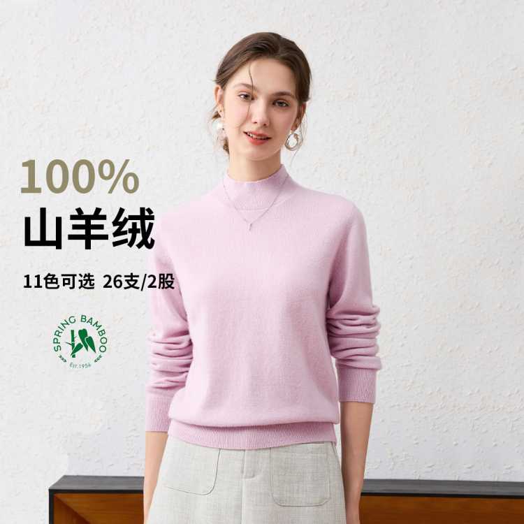 春竹 高級輕奢冬季減齡羊絨衫女100山羊絨半高領保暖長袖女士針織衫