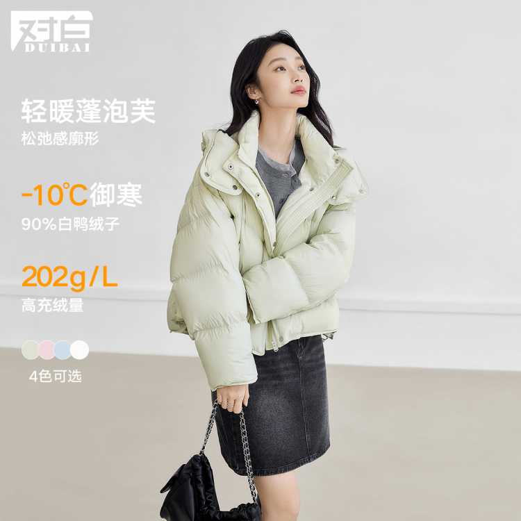 對白 90白鴨絨冬裝馬卡龍泡芙女式短款羽絨服連帽面包服