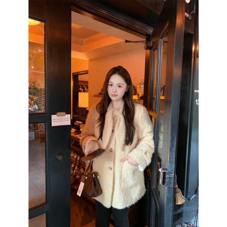 大婉醬 微胖大碼小個子女款舒適山羊絨綿羊毛寬松雙面呢大衣顯瘦長款外套